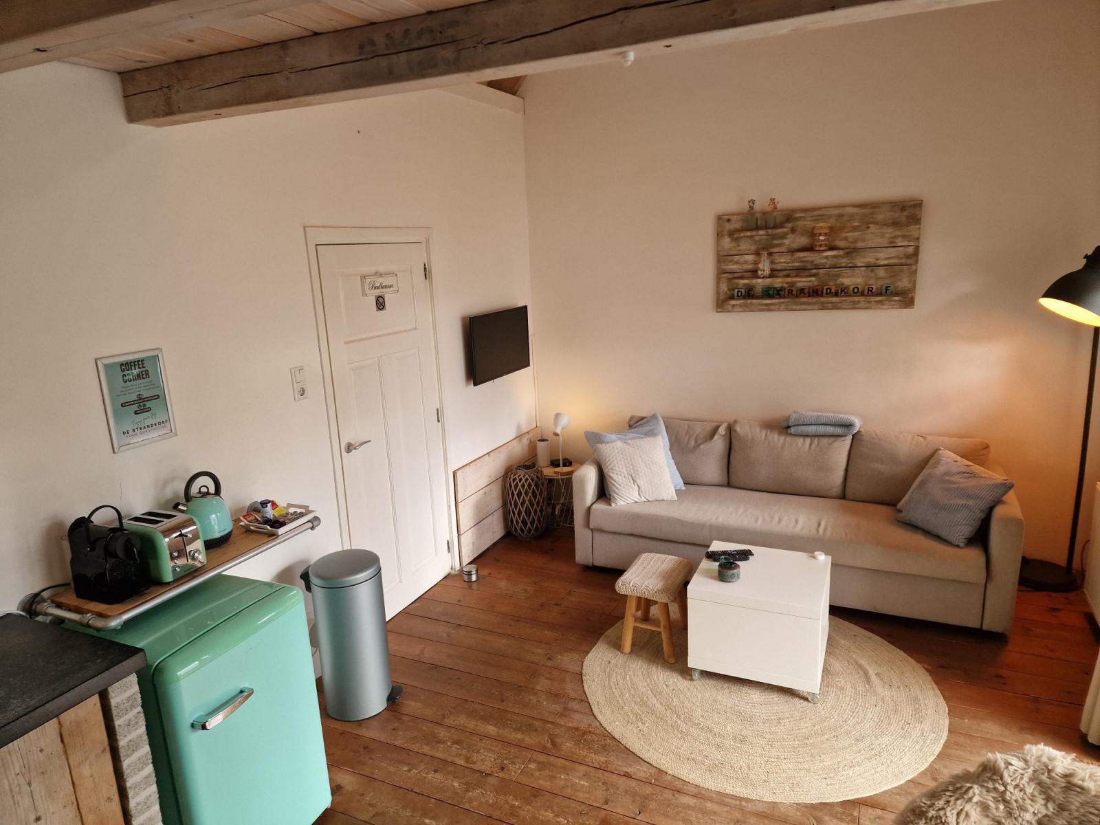 De Strandkorf is situated behind the owner’s house. During your stay the cottage is your home, with a private parking, central heating, and airconditioning. In its cosy kitchen you can cook your diner, have breakfast and enjoy your stay.
